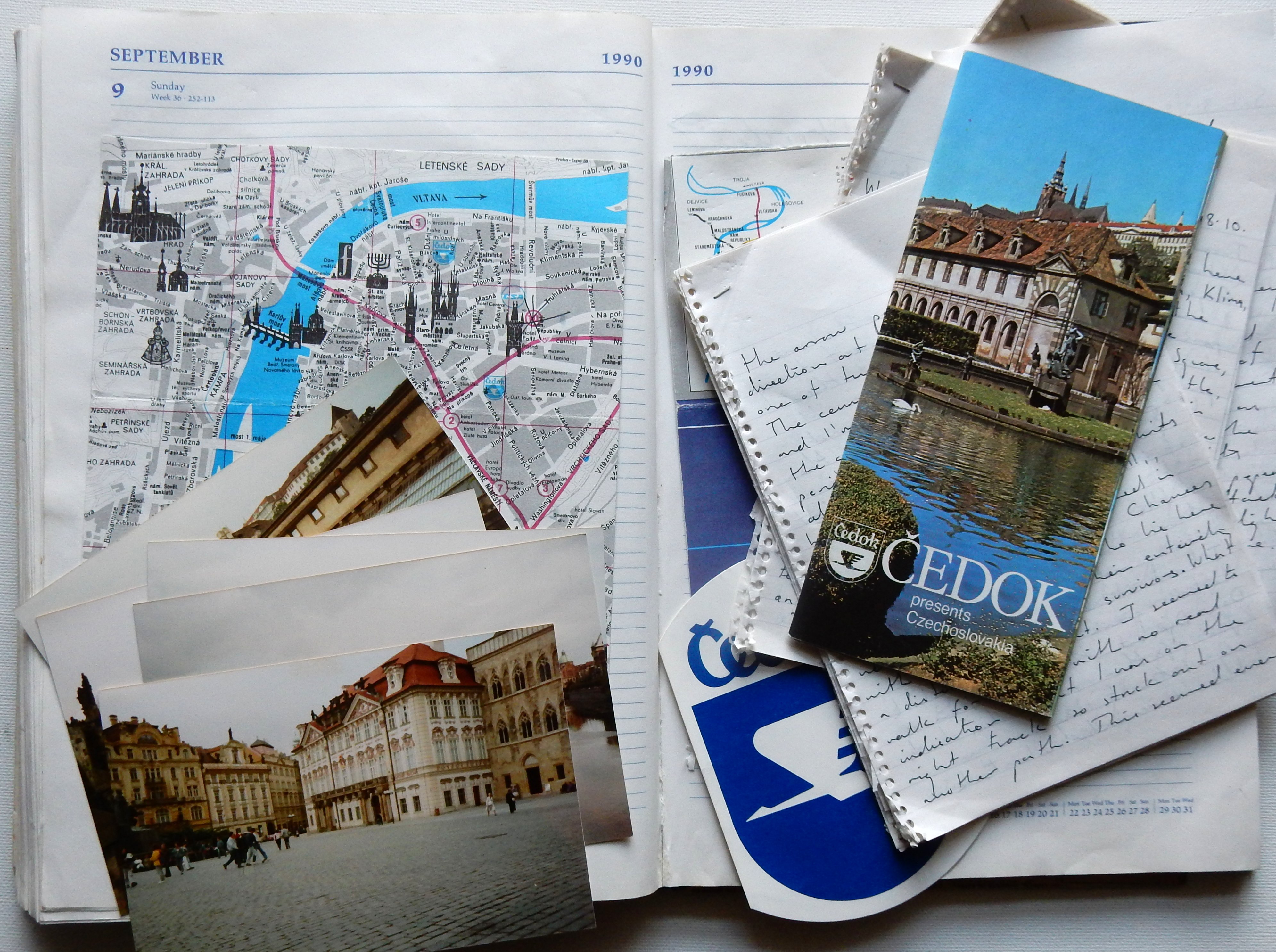 It seems an appropriate day (3rd June) to post these rough diary fragments and photographs from a trip to Prague in September 1990. Retrieved from the attic, the photographs would have been taken on one of those pre-loaded cameras that you stuck into SupaSnapS or Boots for developing. These have just been re-photographed digitally. Not the best quality but may give a subjective sliver of an idea of what Prague looked and felt like not too long after the Velvet Revolution.