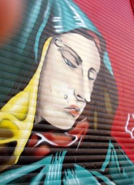 I meander through some of the side streets back towards the ice rink and whilst many buildings are in disarray, the sun is bringing out the best in them. An old industrial fence morphs into beautiful, striped, colour field, minimalism.