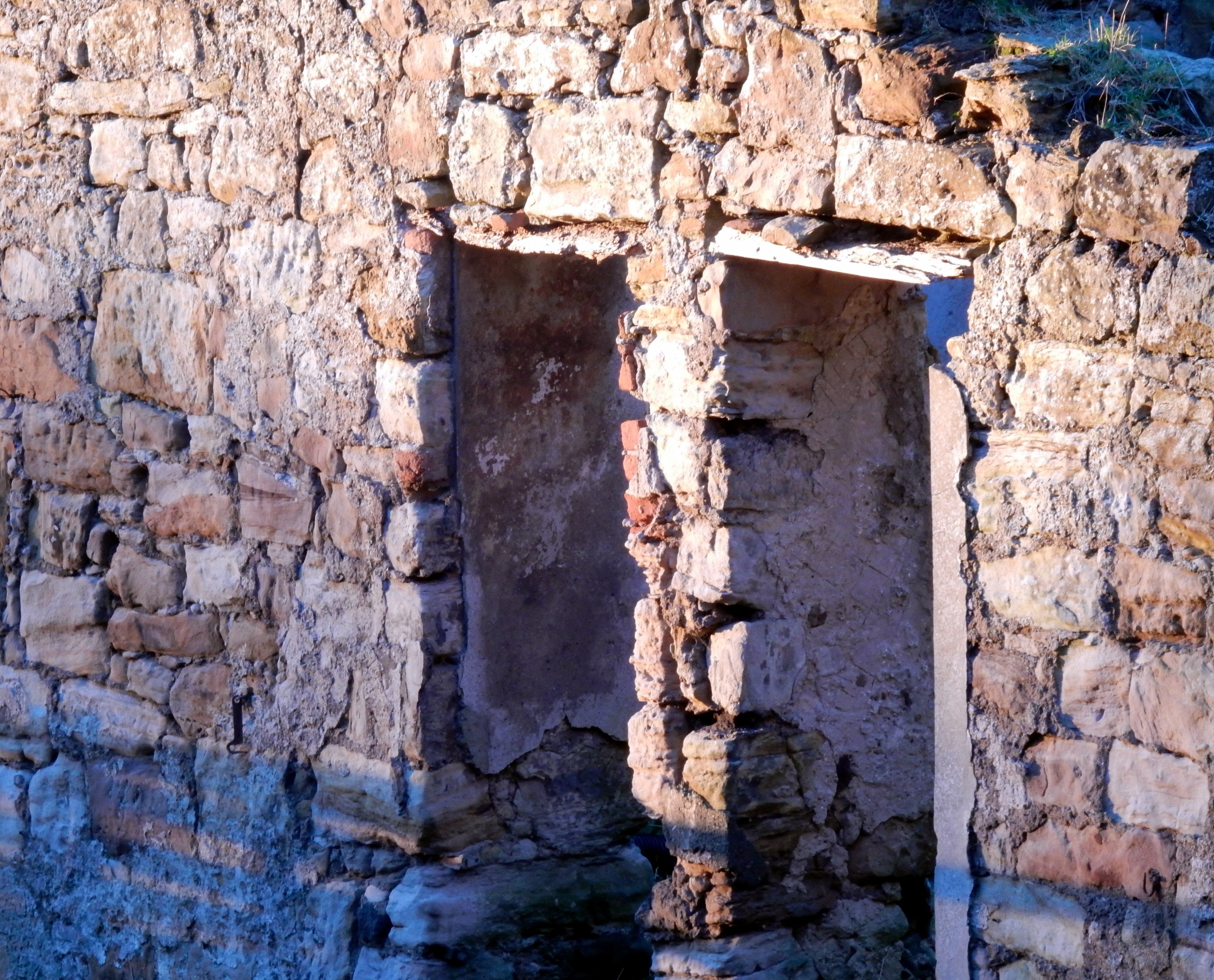 We are intrigued by the sign on a set of ruined agricultural buildings. Clearly, it has been a long time since they were operational. Part of the roof is missing and internal vegetation is now stretching for the sun.