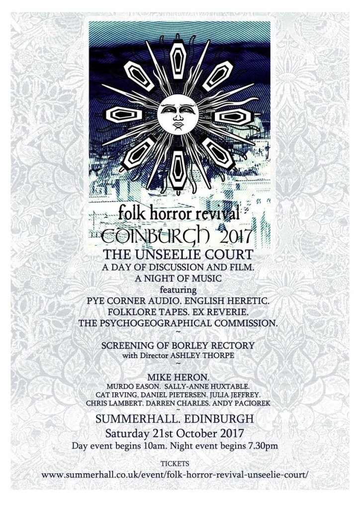 Many thanks to the Folk Horror Revival team for the invite to talk and for putting on such a great day and evening of words and music. A special thanks also to Chris Lambert for stepping in to manage the slide show after the slide pointer appeared to give up the ghost. (May well have been operator error!).